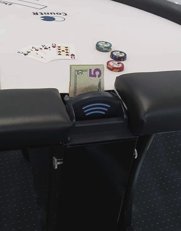 TITA Gold extends the TITA Silver by a banknote acceptor with a stacker box. All accepted tickets and banknotes are safely stored in the stacker box and can be processed quickly and easily by the Softcount team. Upon acceptance, not only are tickets checked for validity, but all banknotes are also checked for counterfeiting and rejected if necessary. It is also possible to accept foreign currencies directly at the table and to rate them using the exchange rates provided by the ART server. In no time at all, foreign currencies are exchanged for chips and enable the customer to play. Of course, if desired, the casino can charge a fixed or percentage fee on the transaction at any time, which is automatically withheld.