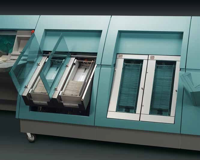 Modularität: Bis zu 5 Ausgabemodule, jedes mit 4 Staplern und Banderolierer oder 2 großen Ausgabeschächten für hohe Volumen loser Banknoten.